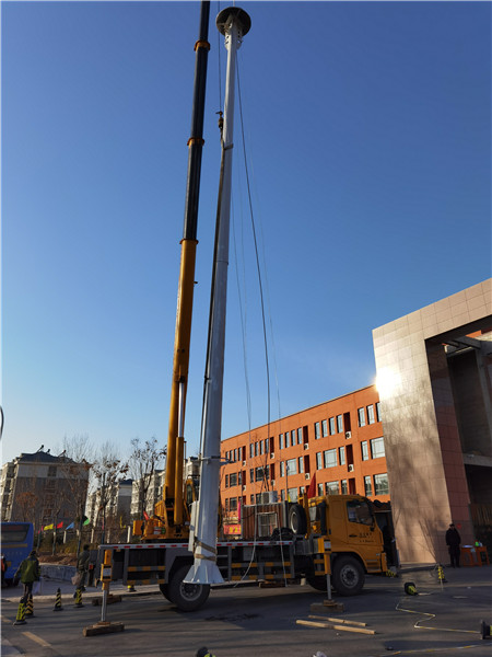 高杆灯灯头造型可根据用户要求、周围环境、照明需要具体而定;内部灯具多由泛光灯和投光灯组成,光源采用NG400高压钠灯,照明半径达60米。杆体一般为棱锥形独体结构,用钢板卷制而成,高度为15—40米,多为两到三节构成。
